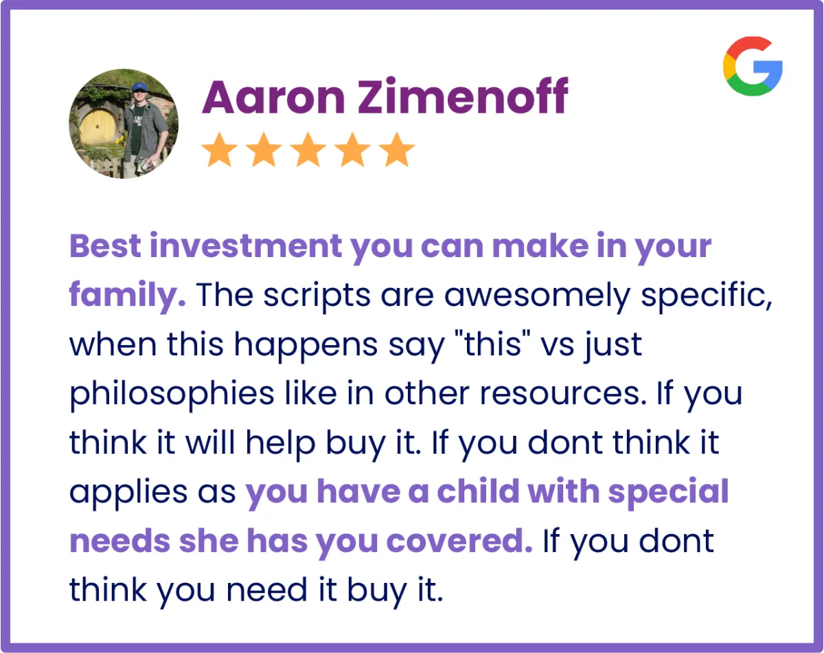Every concept you learn in our program comes with parent-tested tools and word-for-word scripts. You’ll always know exactly what to say and when to say it, which prevents you from reacting emotionally or leaving things to chance. Our tools are specifically designed to help you identify, isolate and resolve the root causes of the misbehaviors as they happen, rather than putting band-aids on symptoms.