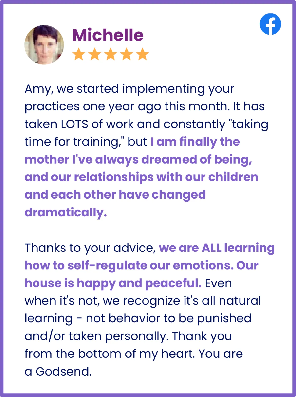 Amy McCready has been a renowned parenting coach for over 20 years. She’s empowered thousands of families to bring peace into their homes with her positive parenting strategies.
