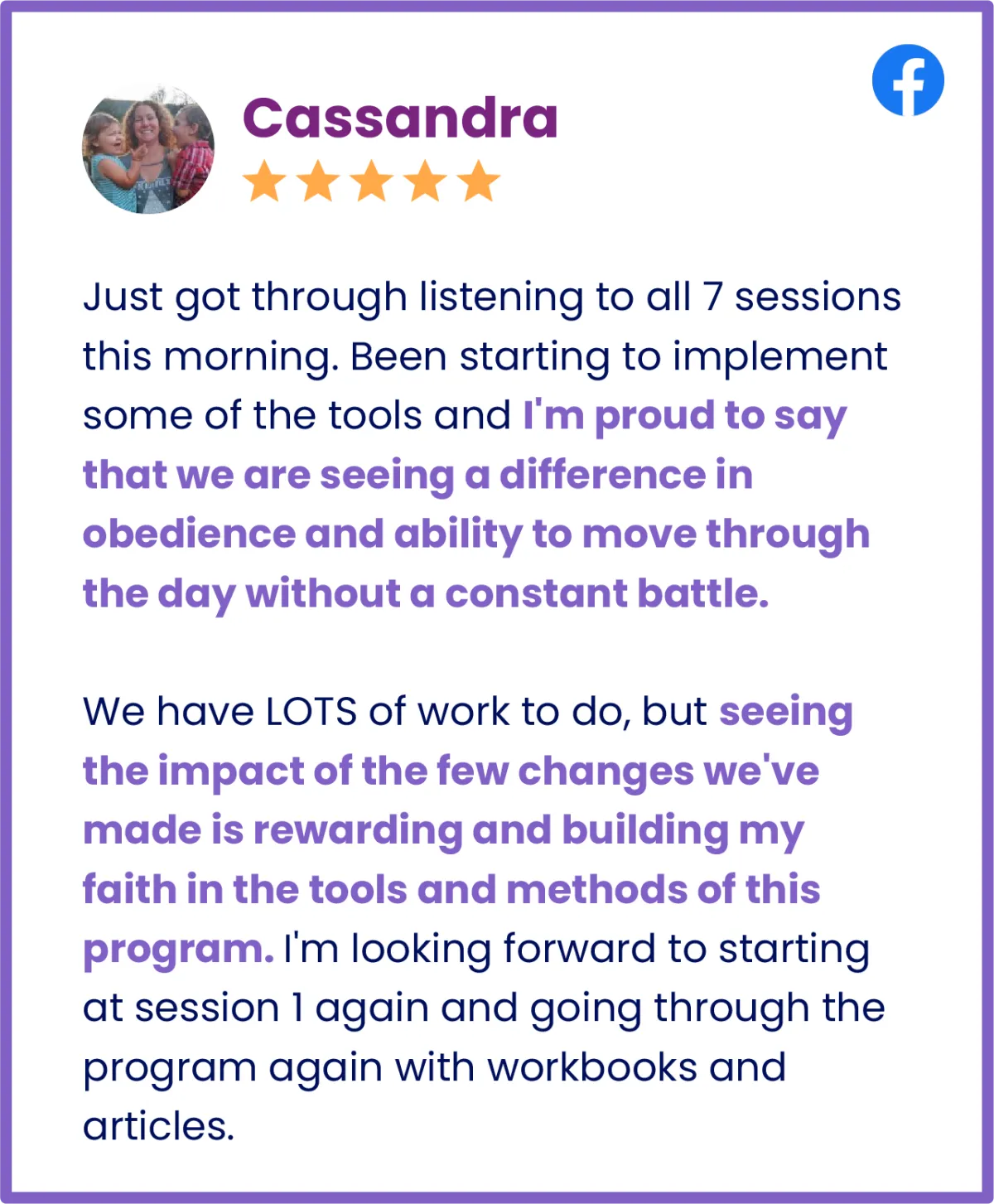 "My 4 y-o daughter is head-strong! Since implementing the System, It's almost like a complete turn-around. I'm definitely noticing more compliance. It's just amazing the way they are now!"