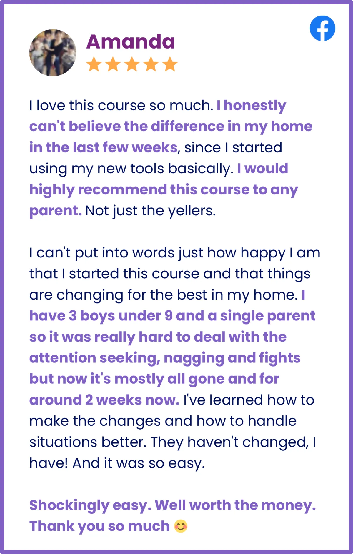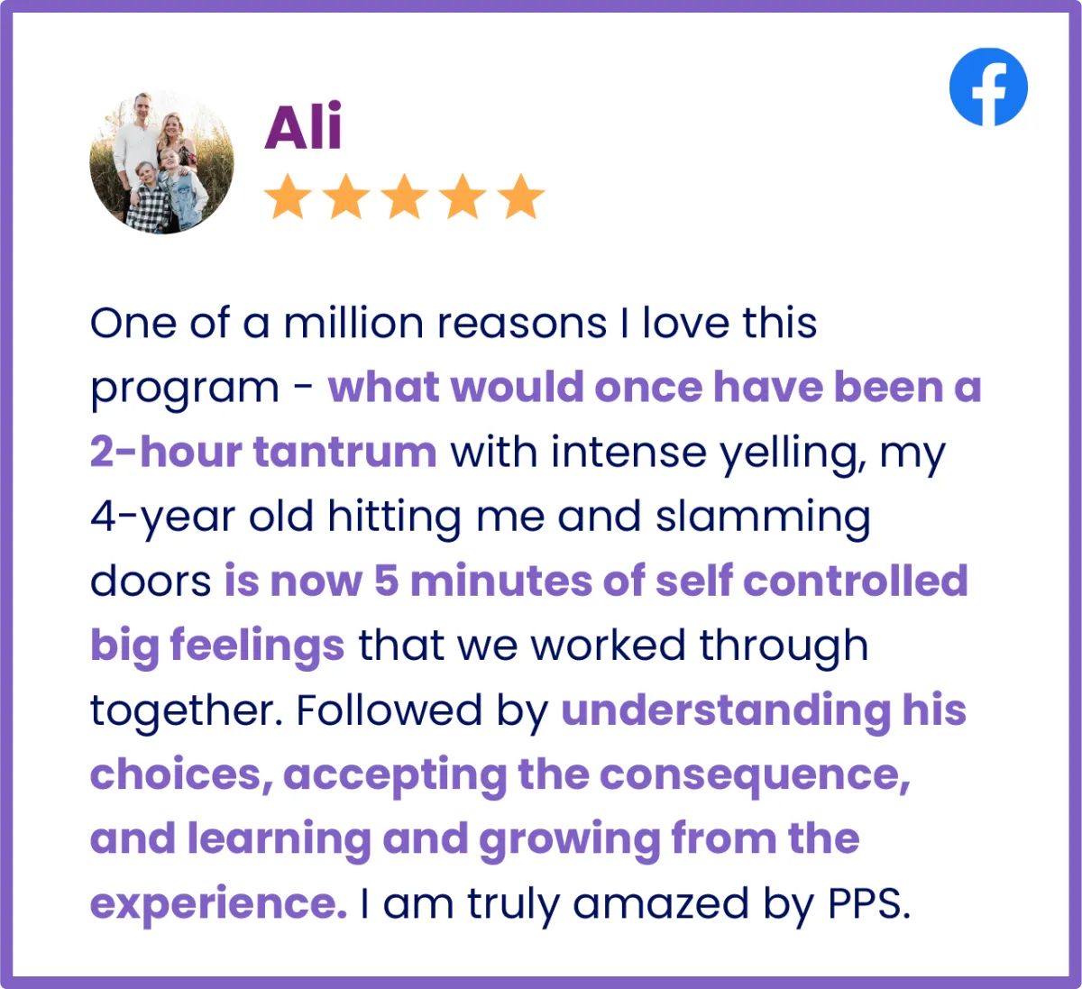While your family is unique. Your parenting challenges are not. You can feel confident that tools will work for your family, just as they've worked with more than 100,000 families on 6 continents. When you join, you will have a step-by-step roadmap to follow. With each tool (strategy) you implement, you will see measurable improvement. If you join at the Elite Access level, you'll have access to The Inner Circle - where Amy, and PPS team, and a loving community of parents will hold your hand and ensure that you are successful.