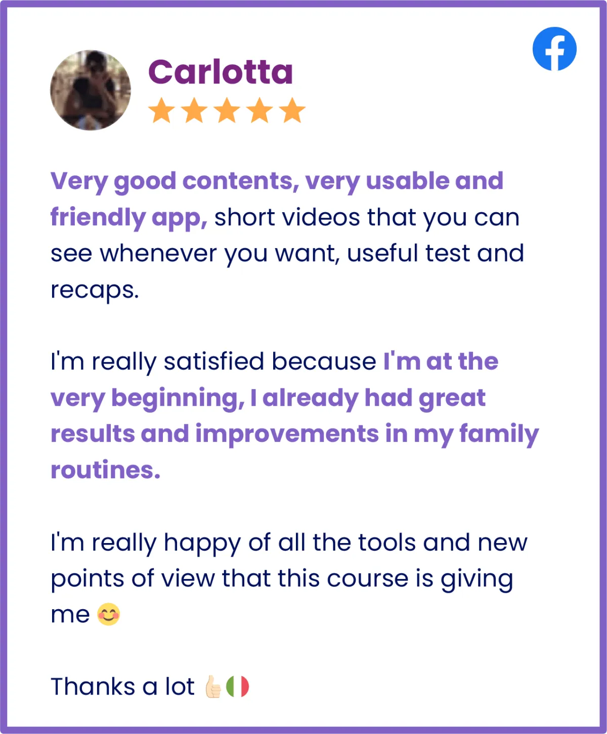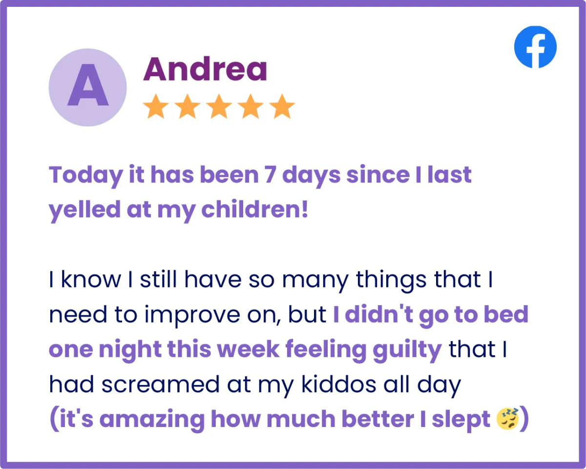 If your partner is hesitant to pay for the course, it will help draw your partner’s attention to the enormous impact the course will have on both your lives, as well as the risk-free nature of a month-to-month subscription. (After all, $14.99 a month is a pretty small price to pay to go to bed every night feeling like The Best Mom or Dad In The World.)